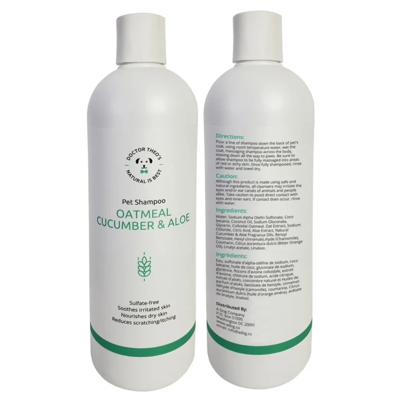 Dr. Theo’s Dog Shampoo – Oatmeal, Cucumber & Aloe – 16 oz (2-Pack) – Natural, pH Balanced, Cruelty-Free