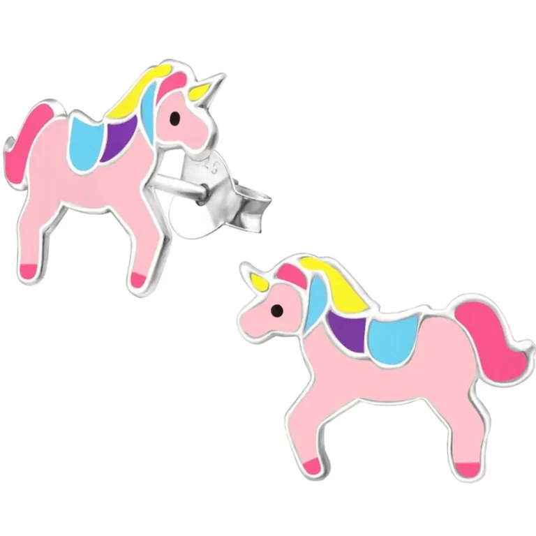 Children’s Sterling Silver Unicorn Stud Earrings for Girls – Cute and Colorful Jewelry for Kids | Perfect Gift for Little Princesses