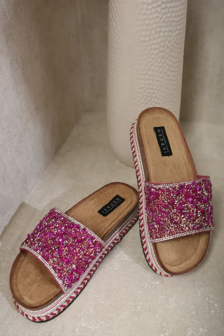 Chunky Embellished Stone Platform Sandals – Glamorous & Comfortable Footwear for Every Occasion