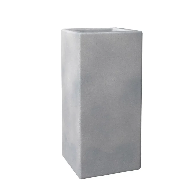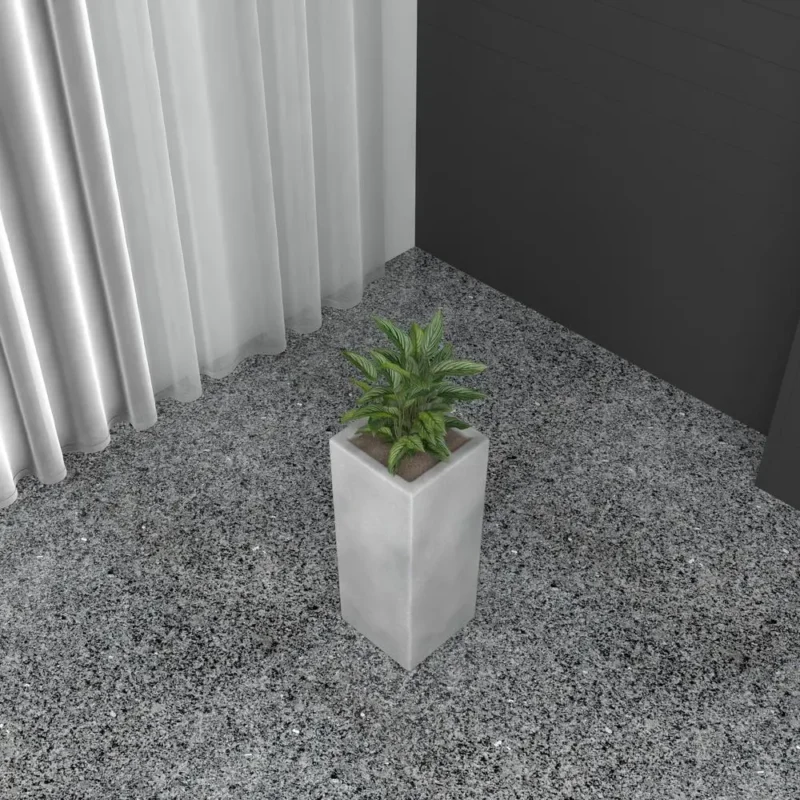 Exquisite Terra Series Poly Stone Planter in Aged Concrete – Durable Fiberstone & MGO Clay, 7.9″ x 7.9″ x 19.7″ for Indoor/Outdoor Use