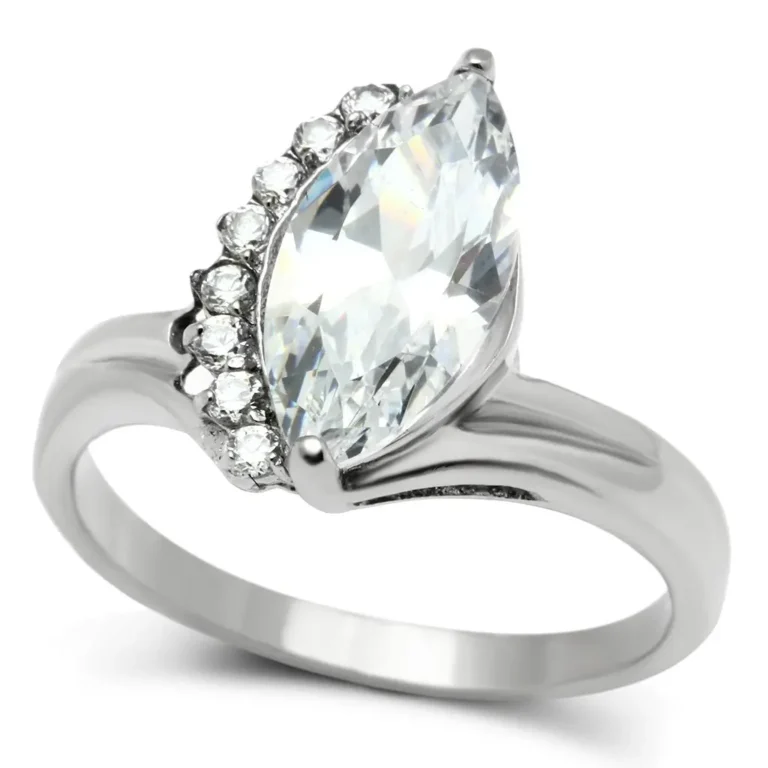 Elegant High Polished Stainless Steel Ring with AAA Grade Clear CZ – TK475