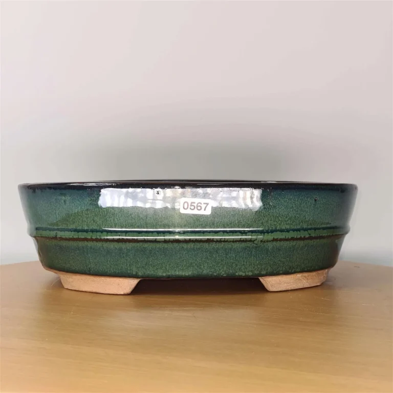 Elegant Green Oval Glazed Bonsai Pot – 31cm x 24cm x 8cm | Enhance Bonsai Beauty