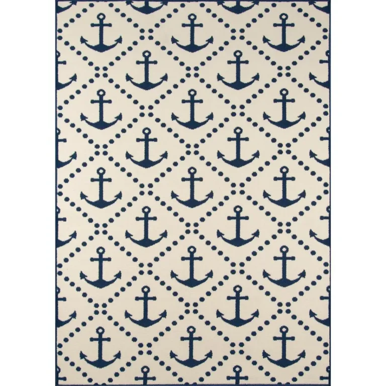 Contemporary Rectangle Area Rug, Navy, 7’10” X 10’10” – Durable Indoor/Outdoor Rug with Nautical Design