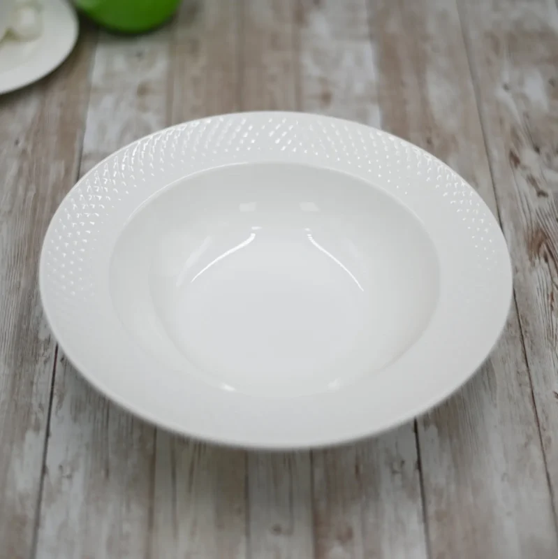 White Porcelain Deep Plate With Embossed Wide Rim – 9″ | Set Of 6 Gift Box