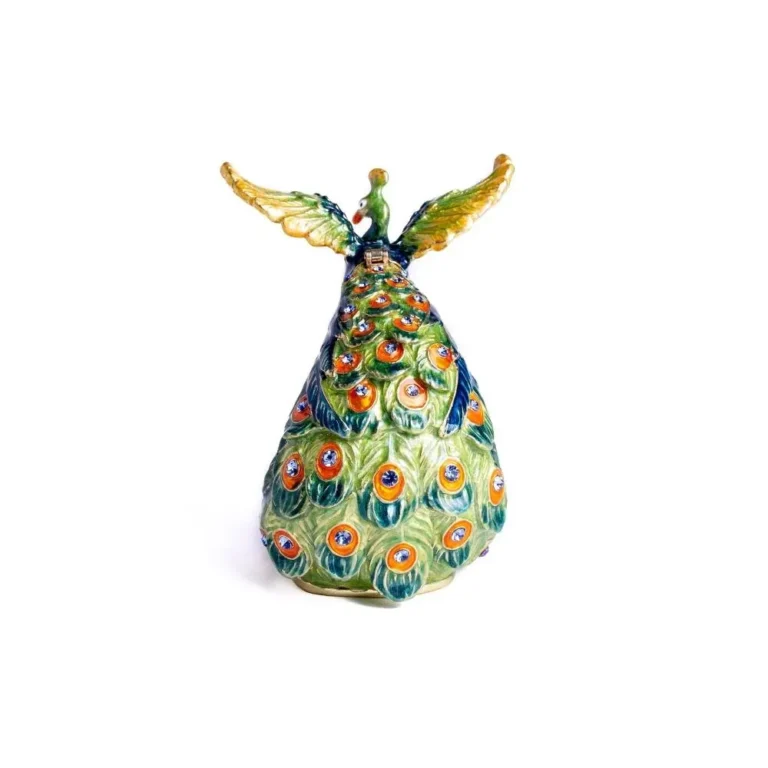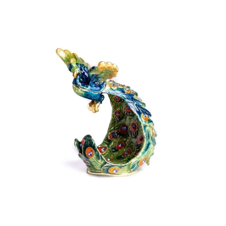 Colorful Decorated Peacock Trinket Box – Handcrafted 24K Gold Plated Collectible with Austrian Crystals by Keren Kopal