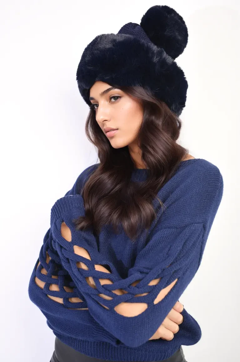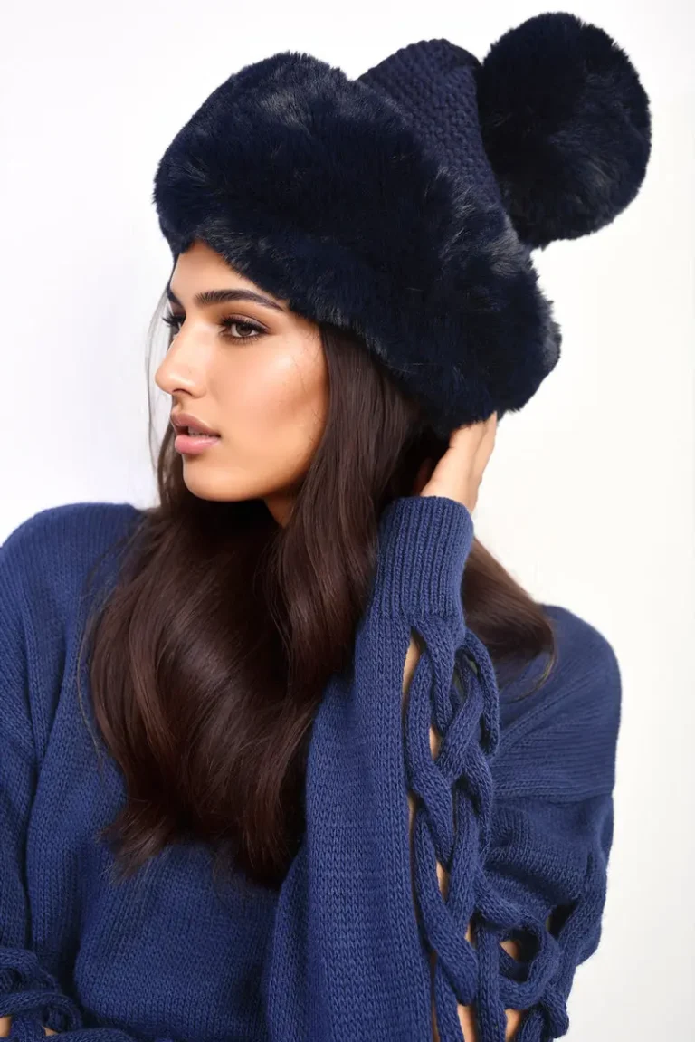 Carly Faux Fur Knitted Winter Hat – Stylish & Warm Winter Essential with Pom-Pom Detail