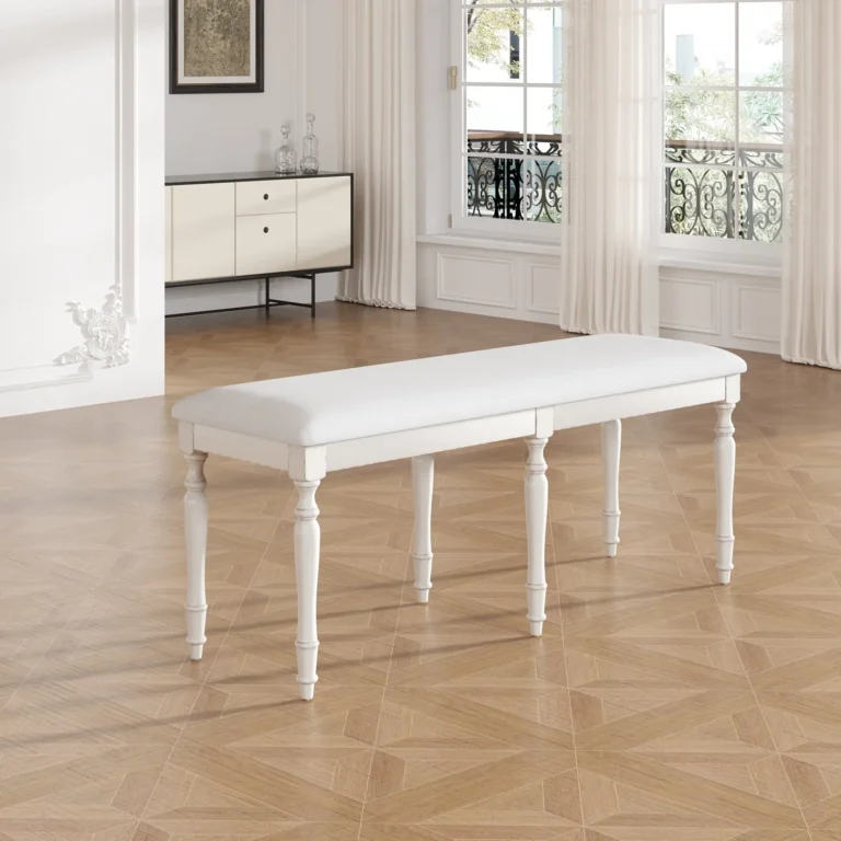 Vintage Traditional Upholstered Dining Bench – 50.4 Inch, 6 Solid Wood Legs, Cream