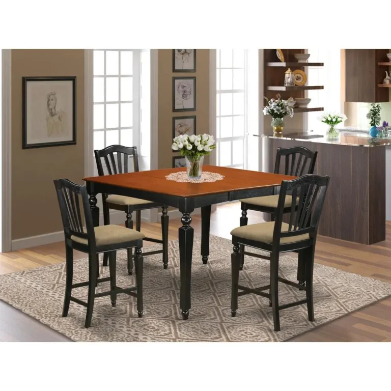 Elegant 5-Piece Counter Height Dining Set with Square Gathering Table and Built-in Leaf Extension – Black Finish