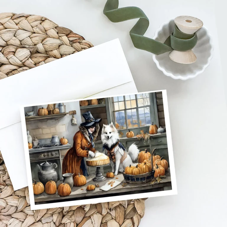 Charming American Eskimo Fall Kitchen Pumpkins Greeting Cards – Pack of 8 | Perfect for Halloween and Fall Celebrations