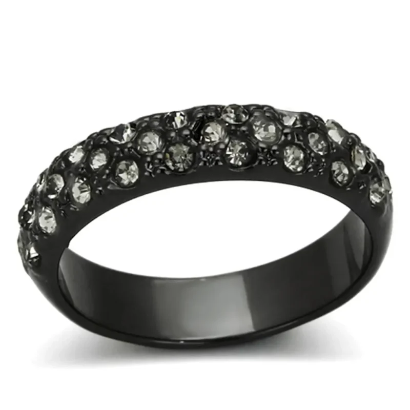 Stunning TIN Cobalt Black Brass Ring with Black Diamond Top Grade Crystal Elegant Jewelry for All Occasions