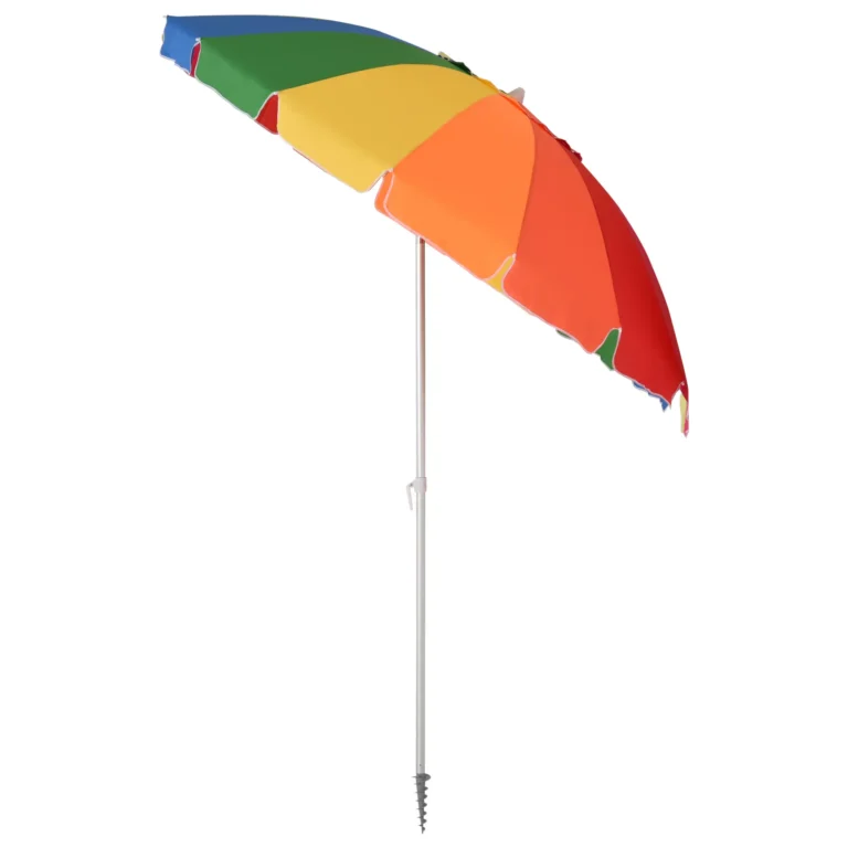Outsunny 2.4m Adjustable Tilt Beach Umbrella with Sand Anchor & Carry Bag – Multicolour Outdoor Patio Shade
