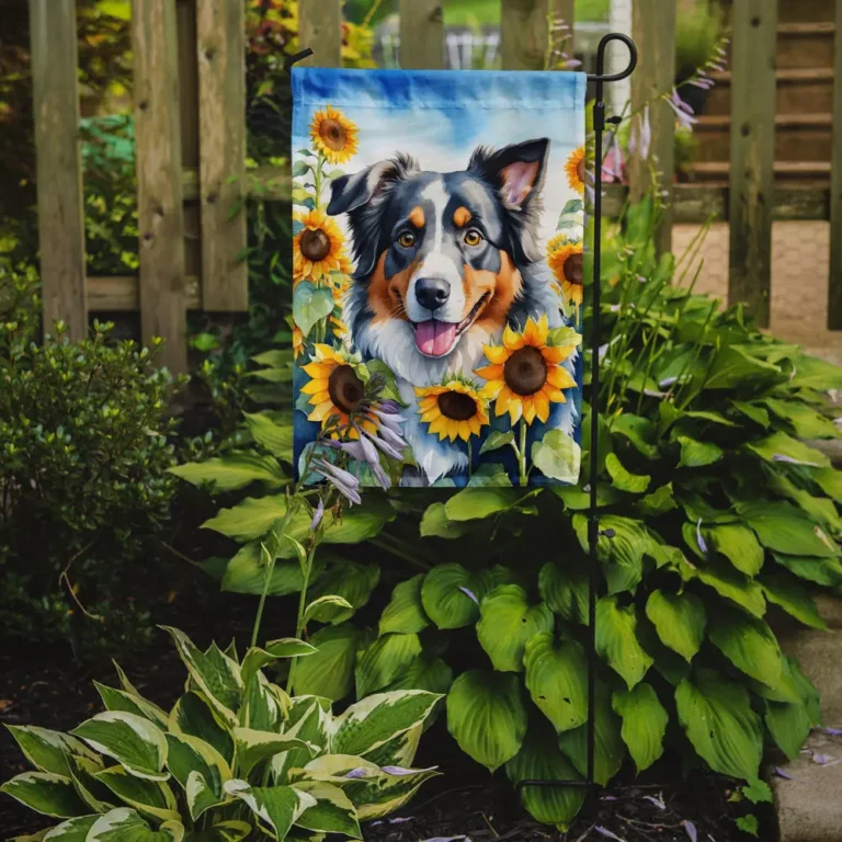 Australian Shepherd in Sunflowers Garden Flag – Vibrant, Weatherproof Outdoor Decor for Your Garden
