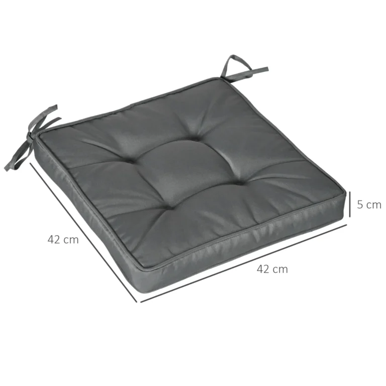 Outsunny Set of 4 Garden Seat Cushions with Ties – 40x40cm Grey Replacement Dining Chair Pads for Comfortable & Durable Outdoor/Indoor Use