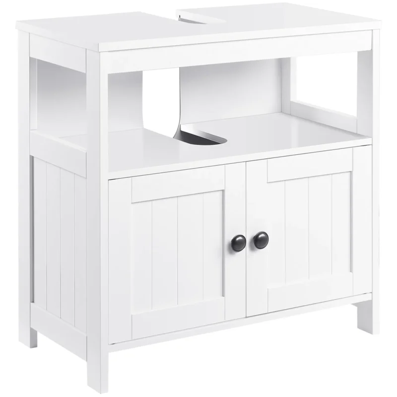 kleankin Modern Bathroom Vanity Storage Unit with Shelves | Farmhouse Style Under Sink Pedestal Cabinet with Double Doors | White Finish | Sturdy MDF Construction