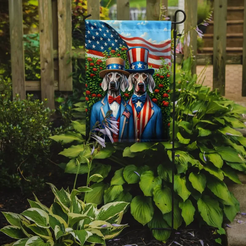 All American Weimaraner Garden Flag – Weatherproof and Double-Sided Outdoor Decor
