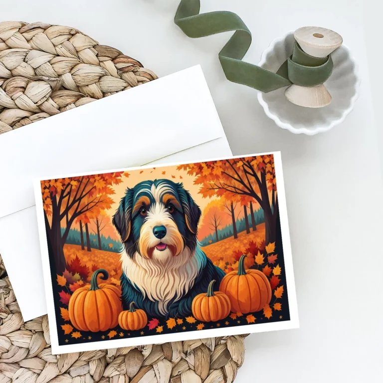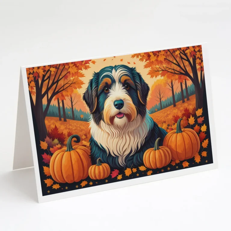 Bearded Collie Fall Greeting Cards – Pack of 8 | Stunning Dog Breed Artwork | Blank Inside for Personalized Messages