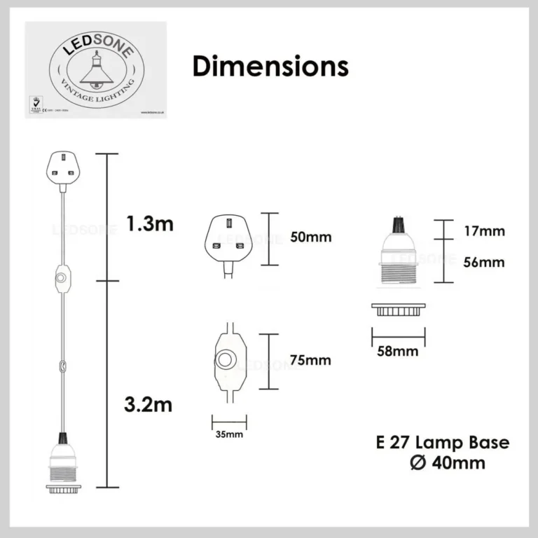 Black and White Dimmer Switch Pendant Lamp with 4.5m Fabric Flex Cable – E27 Holder