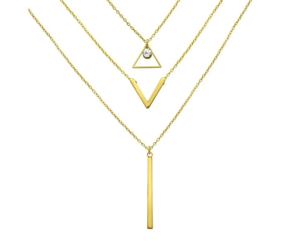 Elegant Gold Plated Geometric Layered Necklace – Sterling Silver, Ideal Gift, Free Shipping Over $50