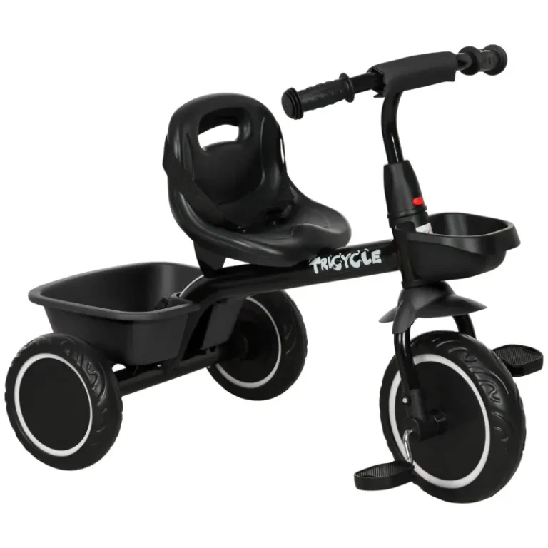 Kids Pedal Trike with Adjustable Seat | AIYAPLAY Tricycle for Ages 2-5 | Steel Frame, Safety Belt & Storage Baskets – Black