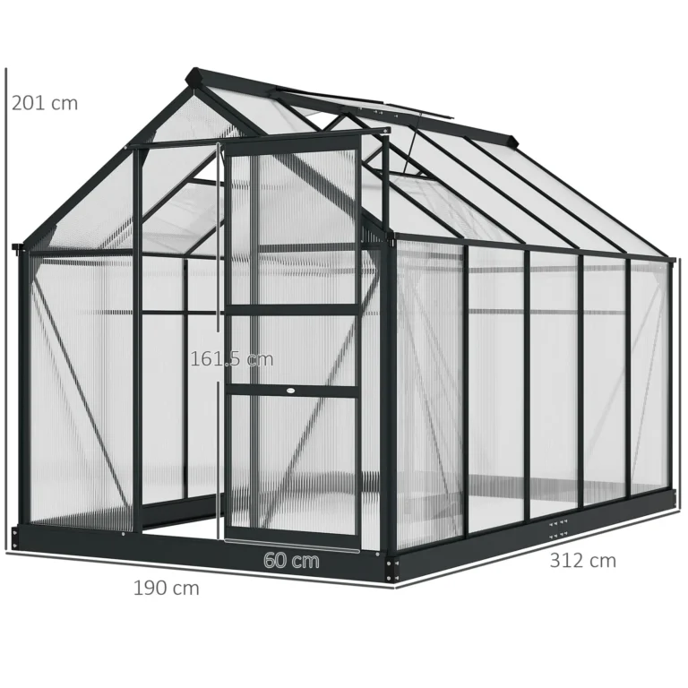 Outsunny Polycarbonate Greenhouse – Large 6 x 10ft Walk-In Greenhouse with Galvanized Base, Aluminium Frame & Slide Door