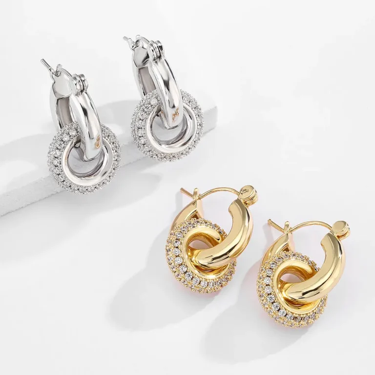 Diva Donut Loop Earrings – Elegant Golden & Silver Hoops with Pave Crystals for a Luxurious Look
