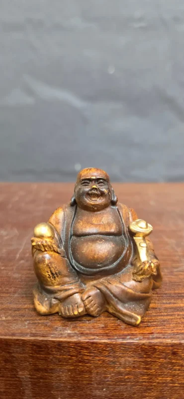 Laughing Buddha Figurine – Brushed Wood Effect | Ideal for Home & Office Decor