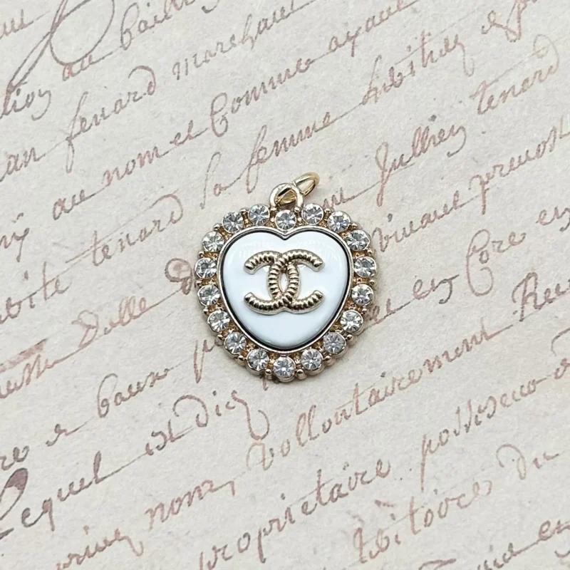 Elegant Heart-Shaped Rhinestone Zipper Pull – White Enamel with Goldtone Accent