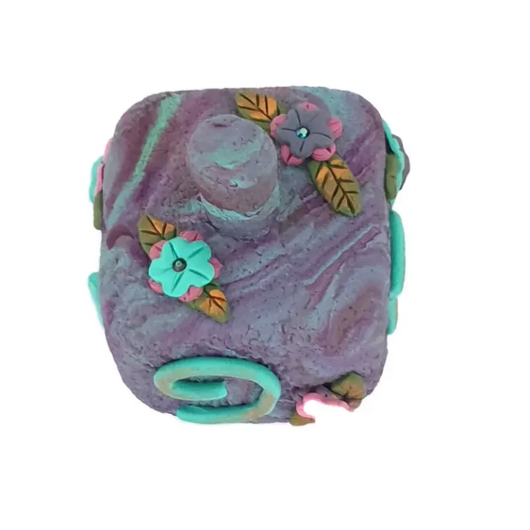 Handmade Judaica Hanukkah Dreidel – Purple Floral with Turquoise Letters | Artisan Crafted Dreidel from Israel