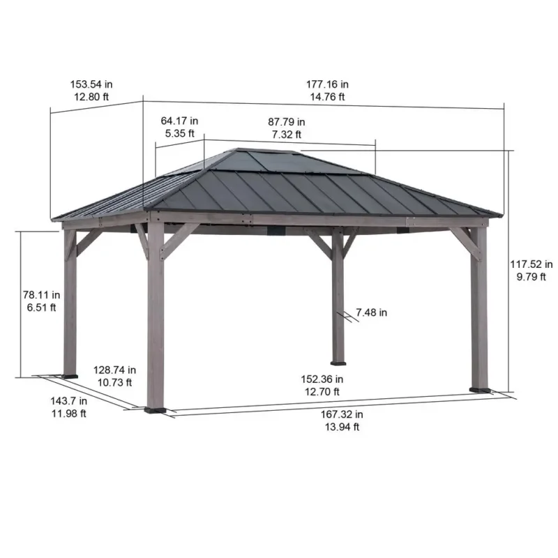 Sunjoy 13 ft. x 15 ft. Cedar Framed Gazebo with Durable Black Steel Roof – Ideal for Outdoor Living