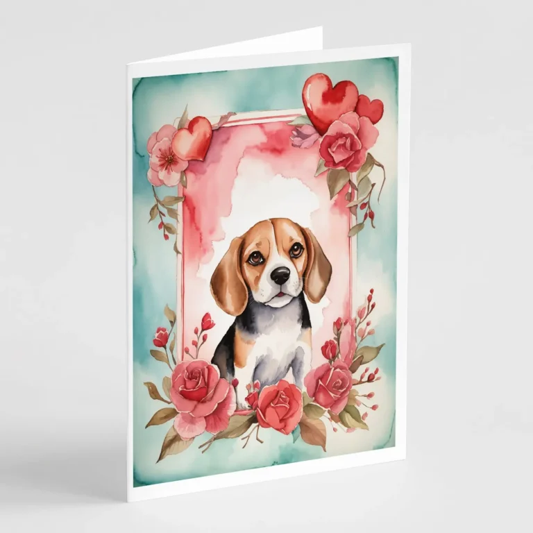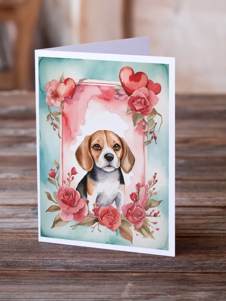 Beagle Valentine Roses Greeting Cards Pack of 8 – Perfect for Valentine’s Day, Birthdays & Special Occasions