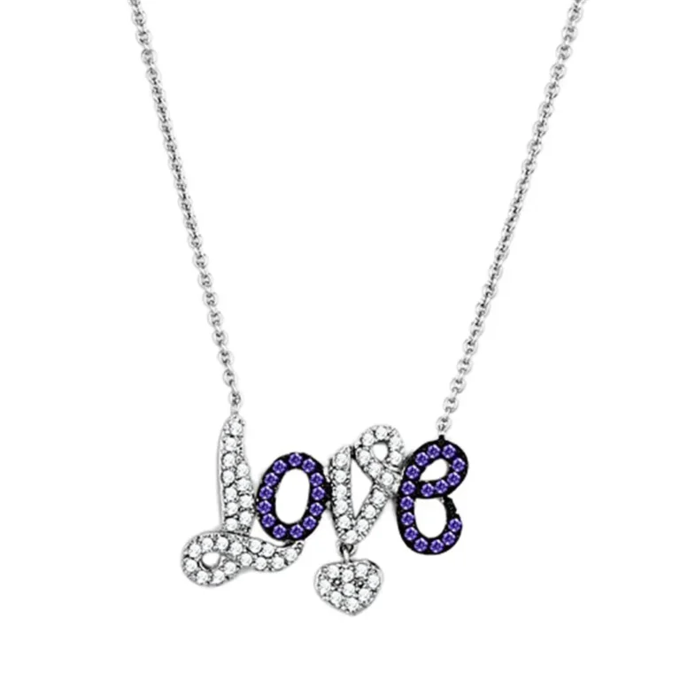 Elegant Rhodium + Ruthenium Brass Necklace with AAA Grade Amethyst CZ – Timeless Jewelry