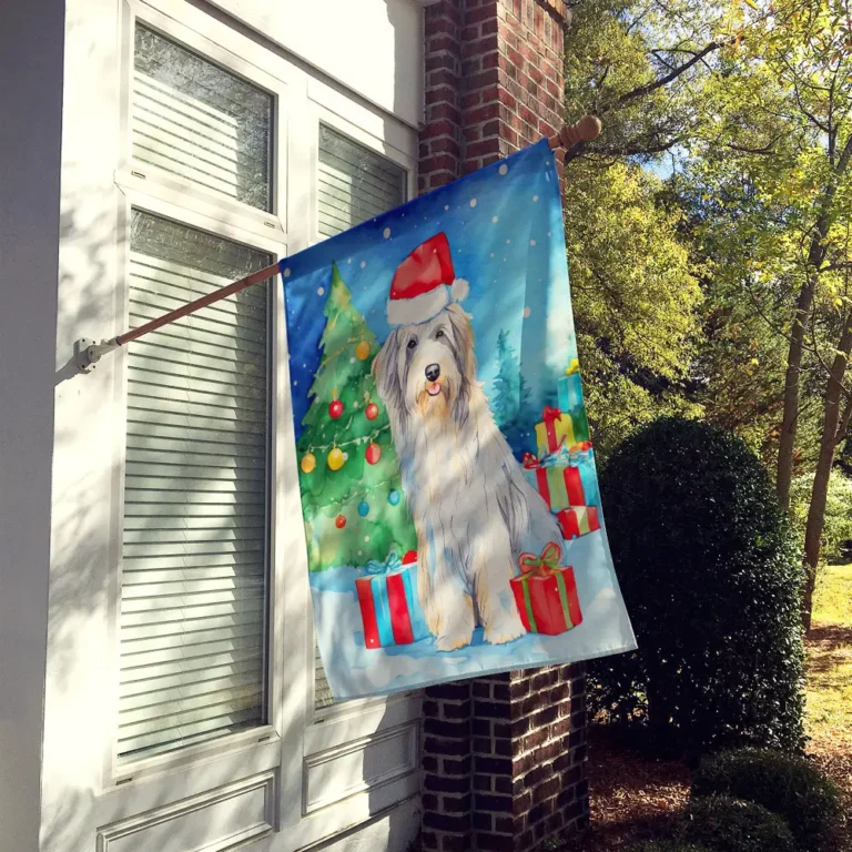 Charming Bearded Collie Christmas House Flag – Festive 28×40 Inch Dog Breed Decorative Outdoor Flag