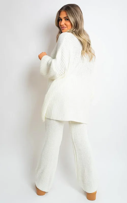 Emma Chunky Knitted Button Up Cardigan & Wide Leg Trousers Co-ord Set – Cozy, Fashionable, Versatile