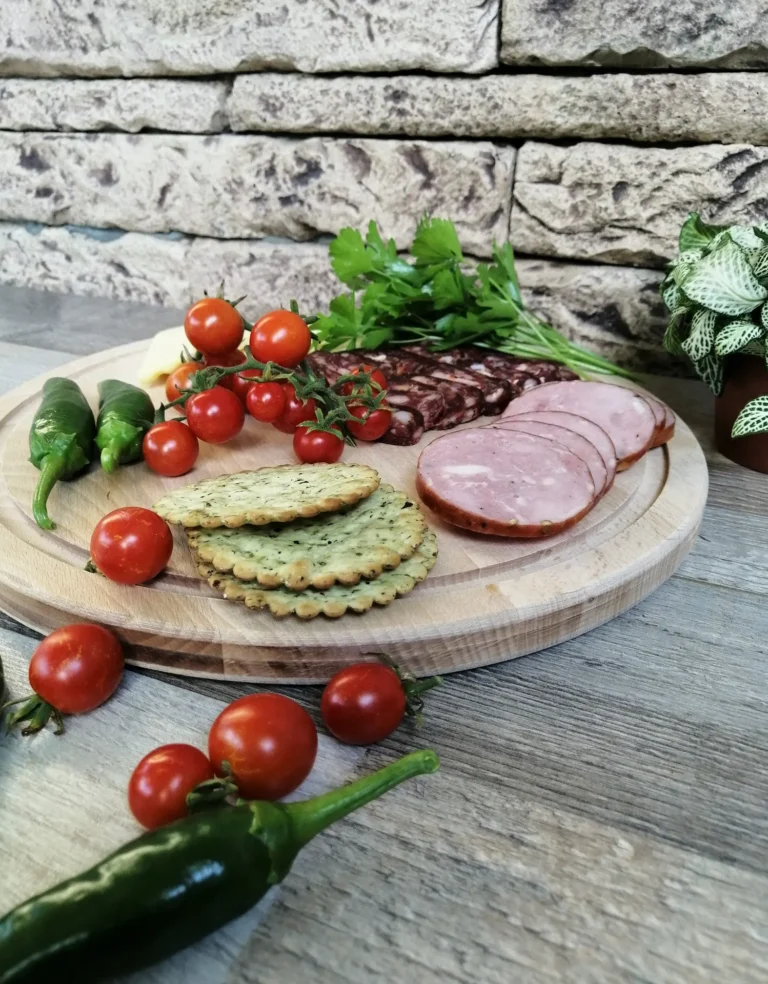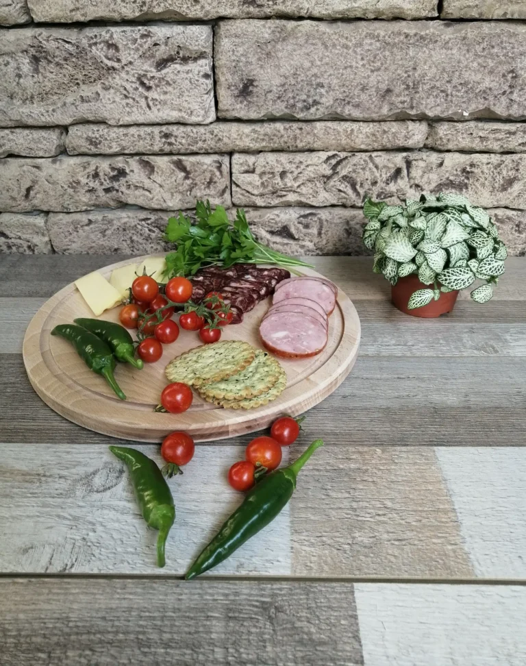 Round Charcuterie Board – Premium Beech Wood Serving Cheese Platter and Wood Serving Tray