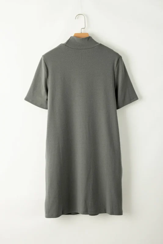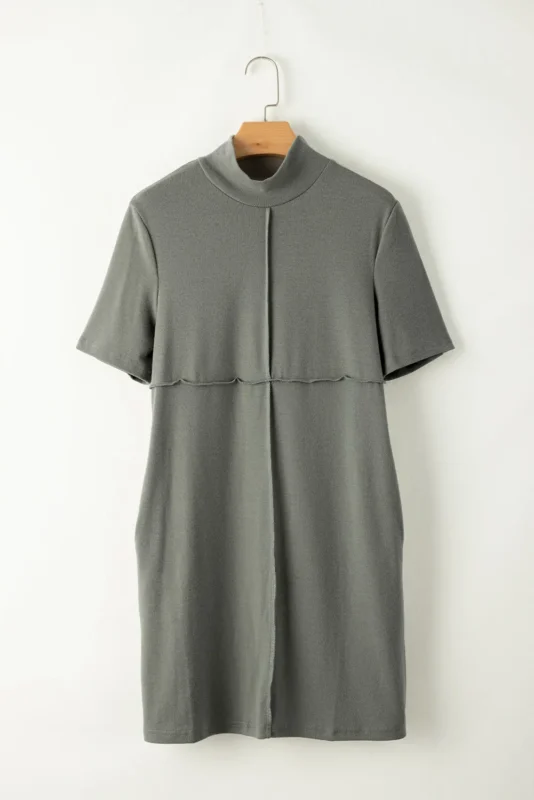 Asha High Neck Cross Seam T-shirt Dress – Elegant, Versatile Mini Dress with Pockets