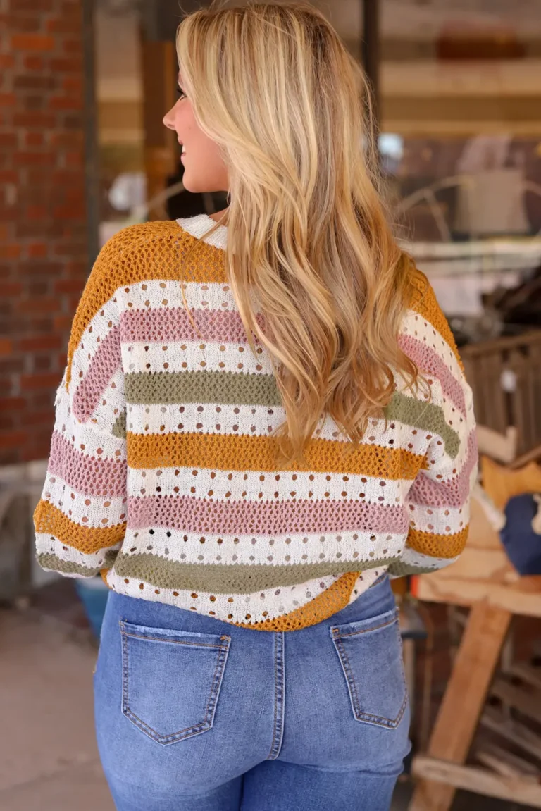 Caroline Striped Hollowed Knitted Loose Sweater – Trendy & Versatile