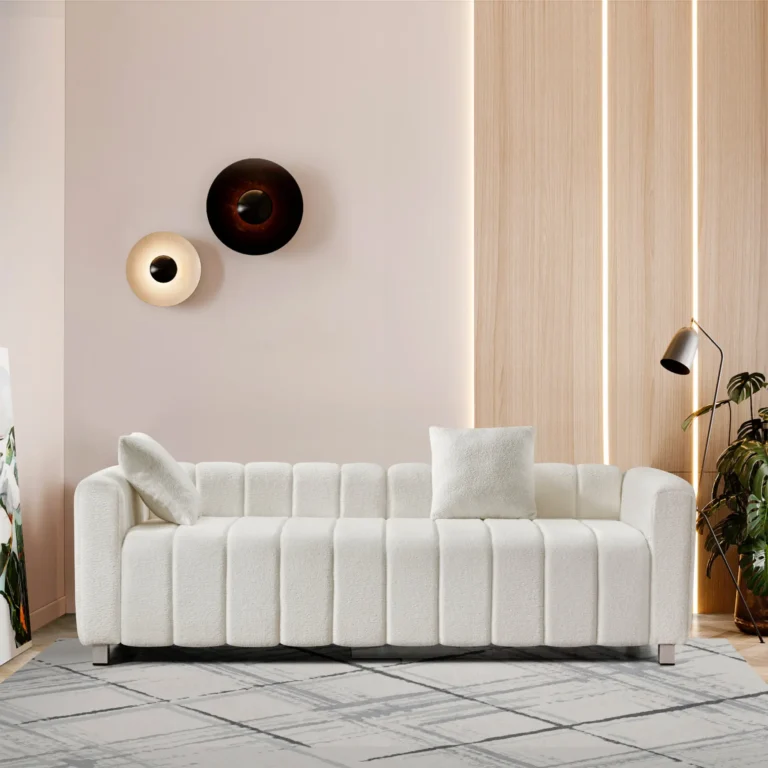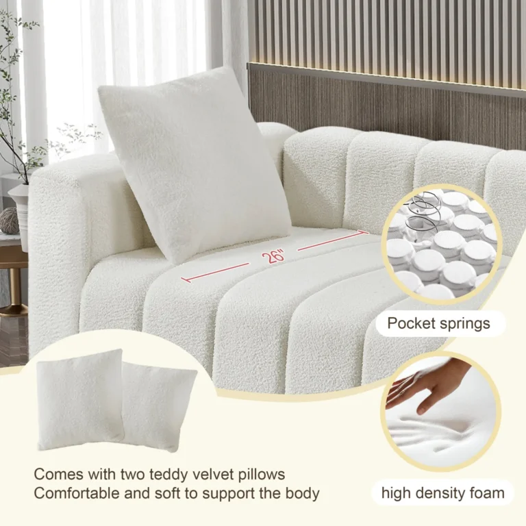 82″ x 30″ Modern Teddy Velvet Sofa – Mid Century Loveseat with Striped Decoration, Ideal for Living Rooms & Bedrooms – 2-3 Seater, Includes 2 Pillows (2 Colors)