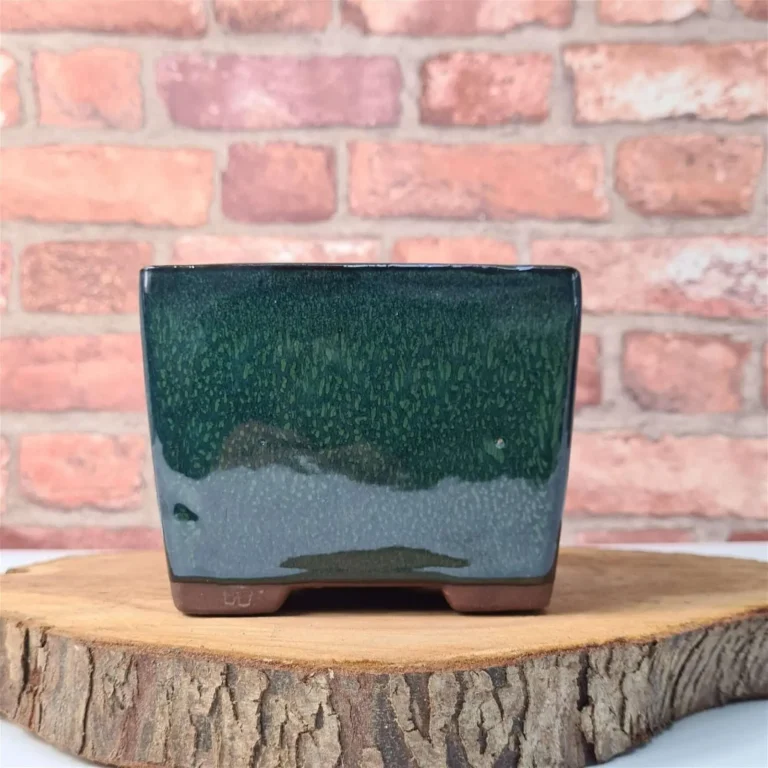 Elegant 13cm Green Glazed Cascade Bonsai Pot | Perfect Square Design for Bonsai Trees | 13x13x10cm