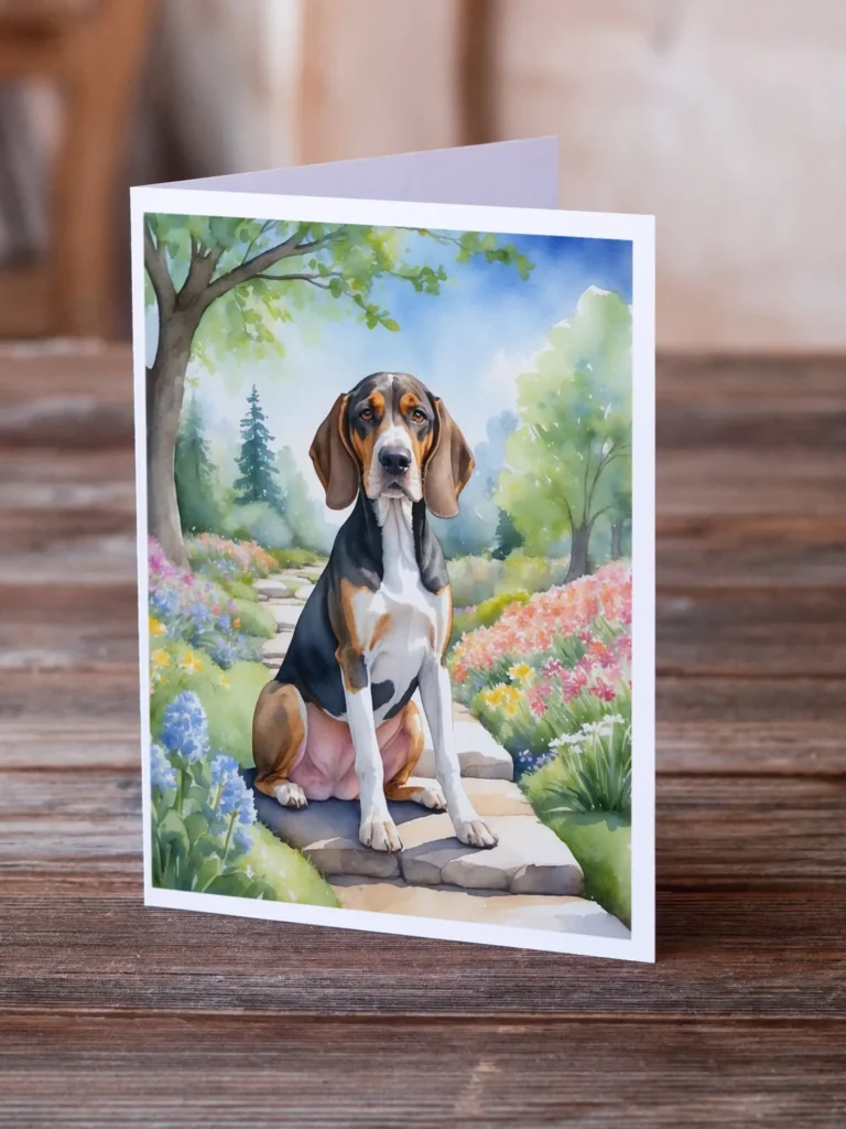 American English Coonhound Greeting Cards – Pack of 8 | Spring Garden Designs | Blank Interiors | High-Quality 80 lb Cover Stock