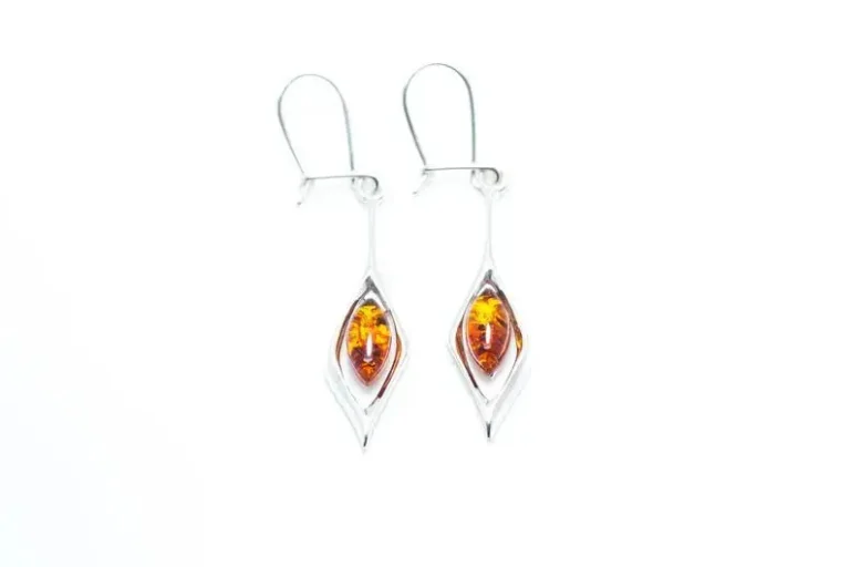 Small Droplet Amber Dangle Earrings – Elegant Minimalist Sterling Silver Design