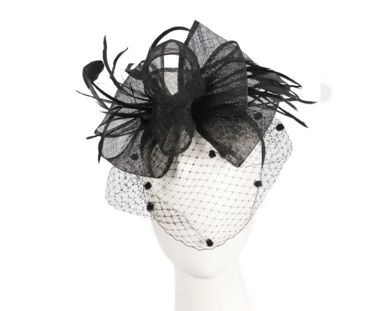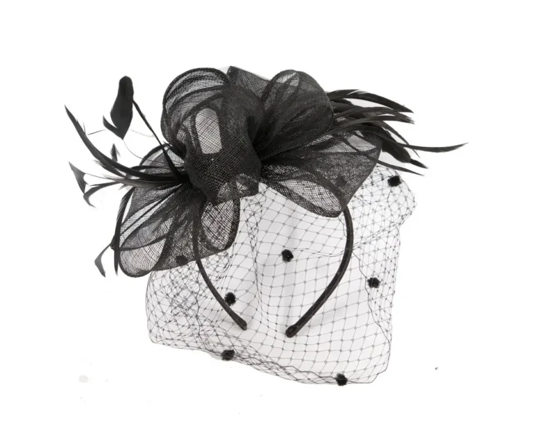 Elegant Black Sinamay Fascinator with Face Veil for Weddings & Formal Events
