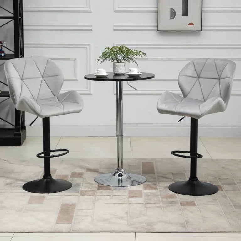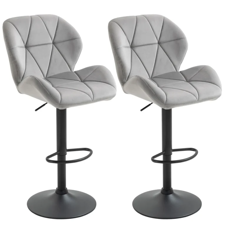 HOMCOM Set of 2 Adjustable Height Bar Stools – Armless, Swivel, Upholstered Counter Chairs, Light Grey Fabric