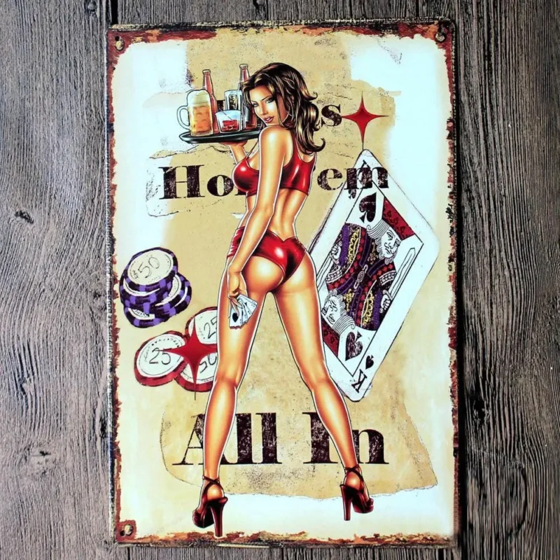 Hot Girl Pub Bar Sign Metal Poster – Captivating Home Decor & Wall Art