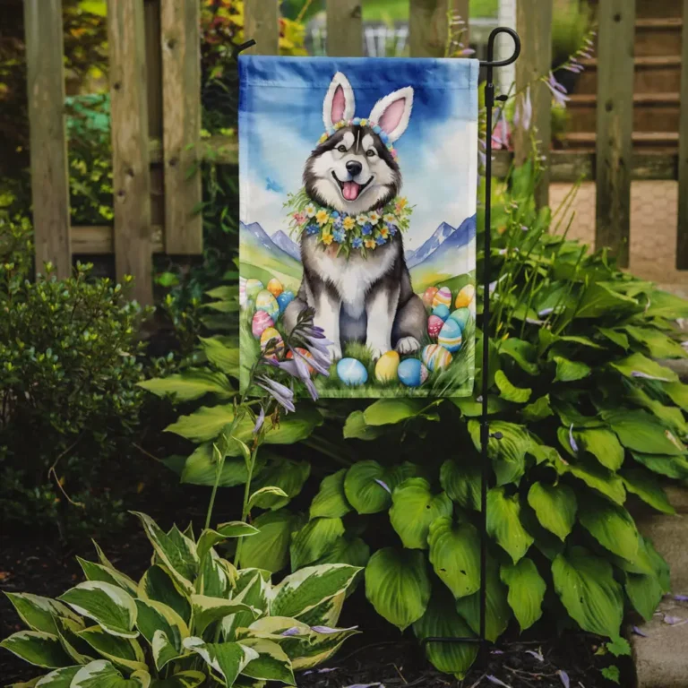 Alaskan Malamute Easter Egg Hunt Garden Flag | Vibrant, Double-Sided, Weatherproof Decor