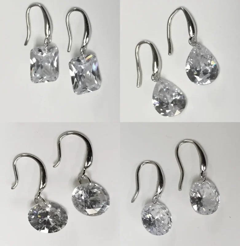 ROCK STARS CZ Stones Earrings – 925 Sterling Silver, Multiple Cuts (Emerald, Pear, Oval, Round)