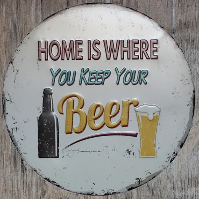 Home Is Where You Keep Your Beer – Vintage & Retro Round Embossed Metal Tin Sign Poster