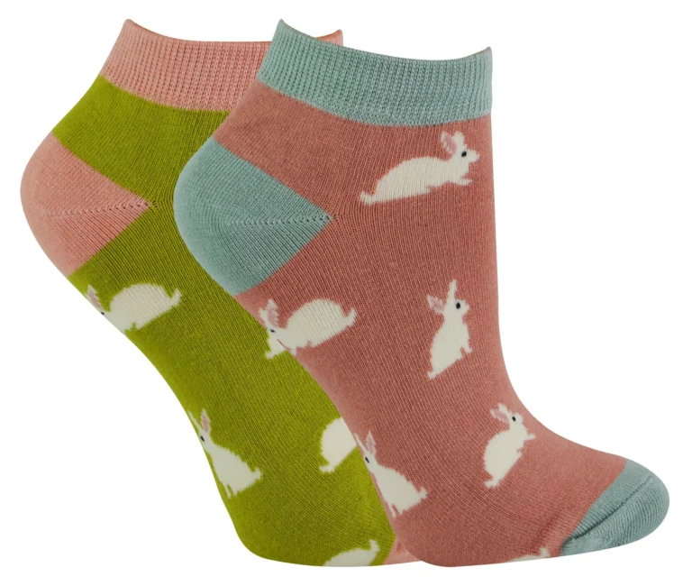2 Pairs Ladies Bamboo Trainer Socks – Soft, Breathable & Hypoallergenic – Cute Animal Patterns – One Size UK 4-7