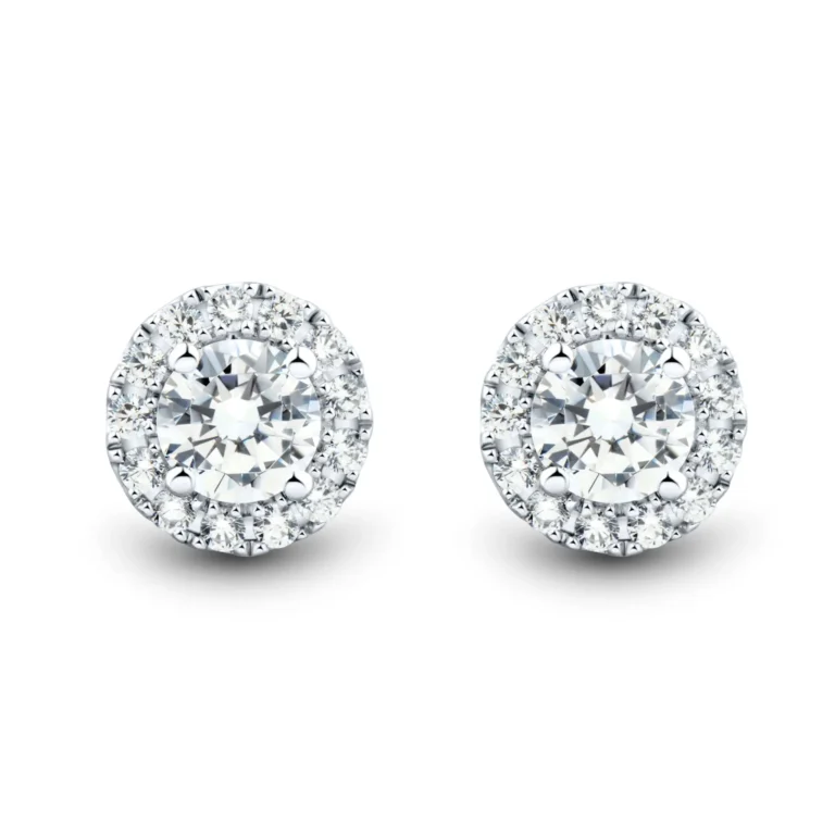 1 CTW Lab Grown Diamond Halo Stud Earrings in 14K White Gold – AGI Certified (F-G/VS) – Ethical Luxury Jewelry