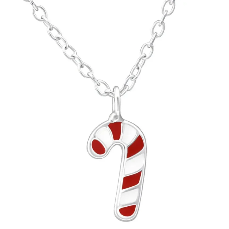 Children’s Sterling Silver Candy Cane Christmas Necklace – Perfect Holiday Gift