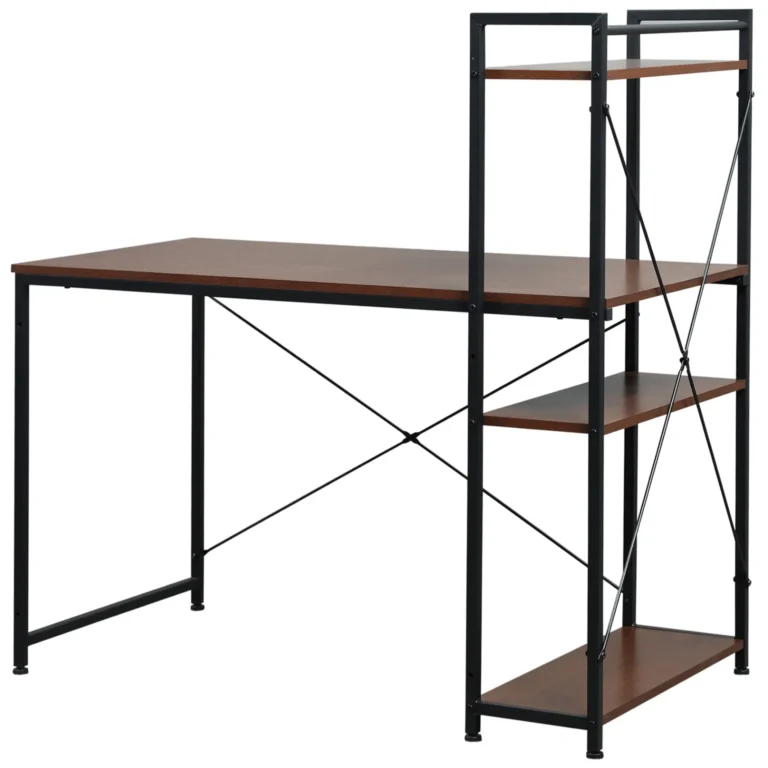 HOMCOM Computer Desk with 4-Tier Bookshelf – Walnut & Black | Home Office PC Table Study Workstation